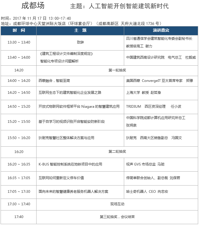 [導讀]本屆峰會成都站主題為:人工智能開創智能建筑新時代。將于11月17日下午,在成都環球中心天堂洲際大酒店舉辦。