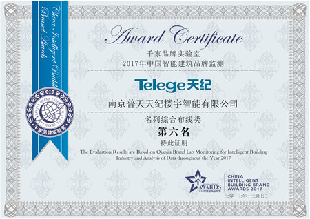 [導讀] 南京普天天紀樓宇智能有限公司榮獲“2017年度十大綜合布線品牌獎”第六名,見證了普天天紀2017年在綜合布線領域的創新與努力。