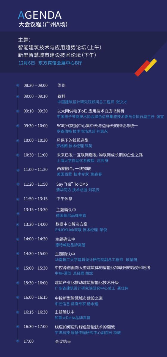 在2018年12月6日,一年一度的建筑智能化行業盛會——第十九屆中國國際建筑智能化峰會(簡稱:峰會)廣州站,將于東方賓館隆重啟幕,屆時,知名智能建筑領域專家、知名品牌高層、行業大咖將齊聚一堂,共同探討智慧城市及智慧社區領域最新發展趨勢及應用,值得一提的是,由于出席人數逾千人,峰會廣州場將分為A、B兩場。