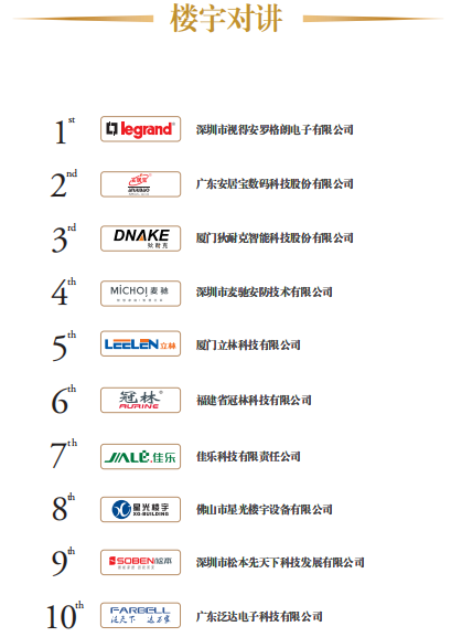 2018年已步入尾聲,在即將過去的一年里,有哪些樓宇對(duì)講企業(yè)表現(xiàn)優(yōu)異,獲得行業(yè)一致認(rèn)可?12月6日晚,被譽(yù)為建筑智能化行業(yè)“奧斯卡”的【中國智能建筑品牌獎(jiǎng)】頒獎(jiǎng)典禮在廣州東方賓館隆重舉行。經(jīng)過前期專業(yè)、公正、權(quán)威的層層評(píng)選,“2018年度十大樓宇對(duì)講品牌獎(jiǎng)”新鮮出爐。獲獎(jiǎng)名單如下: