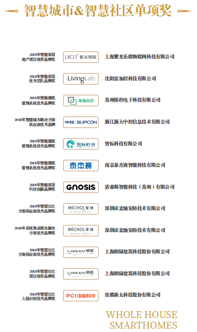 2018年智慧社區(qū)方案供應(yīng)商優(yōu)秀品牌獎(jiǎng)&2018年智慧社區(qū)項(xiàng)目推薦品牌獎(jiǎng):