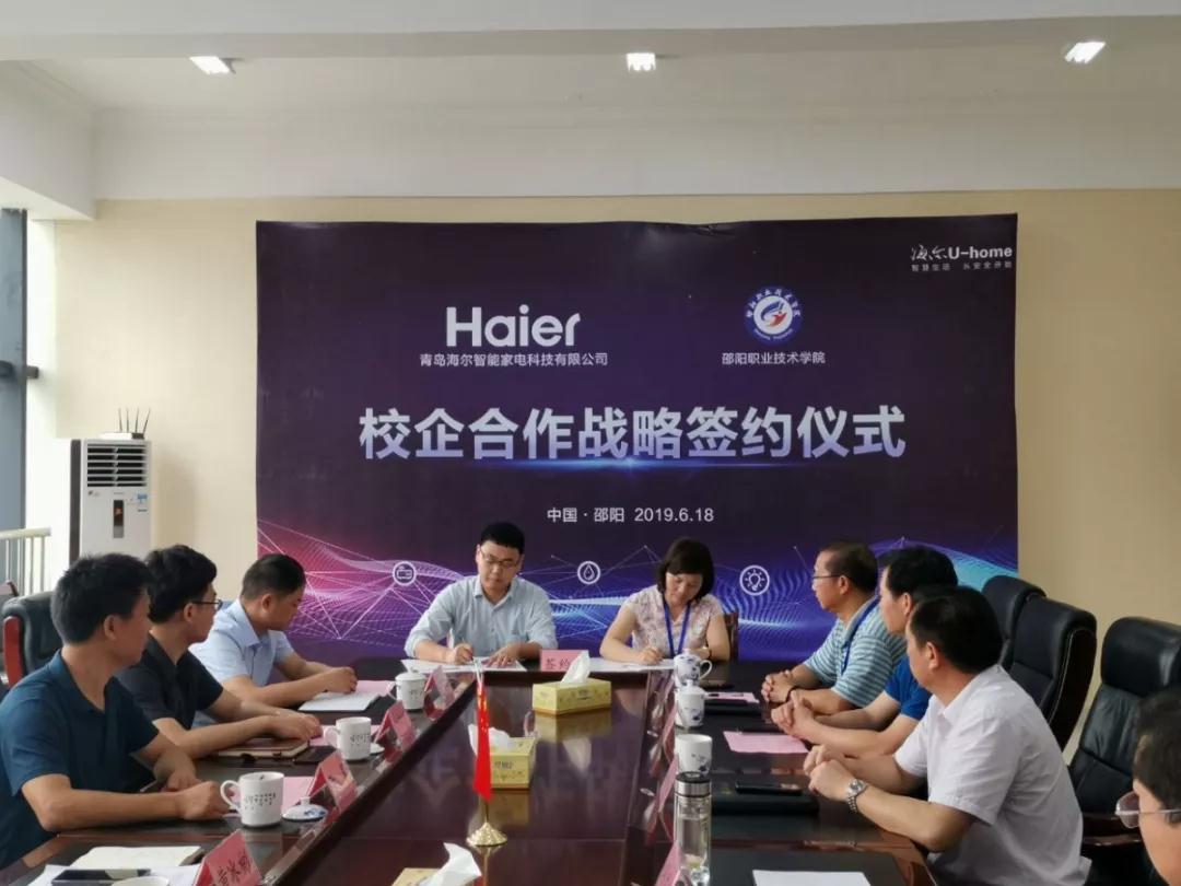 [導讀]6月18日,青島海爾智能家電科技有限公司與邵陽職業技術學院校企合作戰略簽約儀式在邵陽職院舉行。海爾智慧校園南部大區總監黃冰彬、學院院長段雪梅代表雙方簽署合作協議書。